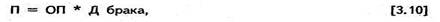 В ходе анализа качества продукции изучают брак, который является косвенным показателем качества. Брак бывает неисправимым и исправимым, внутренним (выявленным на предприятии) и внешним (выявленным потребителями). При анализе брака изучают его динамику по абсолютной сумме, долю брака в объеме товарной продукции, рассчитывают потери от брака (П):