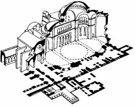 Собор св. Софии в Константинополе. 537 г. Аксонометрический разрез.