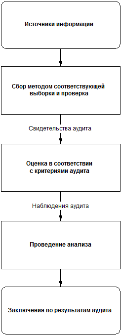 В процессе проведения аудита, информация, относящаяся к целям, объёму и критериям аудита, включая информацию по взаимодействию функций, видов деятельности и процессов, должна собираться методом соответствующей выборки и должна быть проверяема. Только проверяемая информация может стать свидетельством аудита. Свидетельства аудита должны регистрироваться.