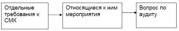 Проверка начинается с раздела 4 «Система качества». Аудитор проверяет документированную систему качества. Оценивает, существует ли постоянное совершенствование и рост эффективности системы качества? Измеряет, наблюдает, анализирует ли организация процессы? Определяет, что делает организация для постоянного совершенствования процессов?