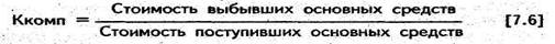 6. Коэффициент компенсации основных средств (Ккомп) отражает интенсивность процесса замещения выбывших из производственного процесса основных средств новыми средствами труда.