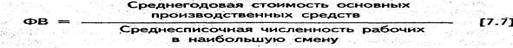 Кроме этого рассчитывают обобщающие показатели обеспеченности предприятия основными производственными средствами, к которым относятся Фондовооруженность труда (ФВ) и техническая вооруженность (ТВ). Фондовооруженность характеризует размер производственных средств, приходящихся на одного работника промышленного персонала.