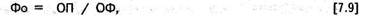 Фондоотдача показывает размер продукции, приходящейся на 1 гривну среднегодовой стоимости основных производственных средств. Она может быть исчислена по всем основным фондам ив том числе по промышленно-производственным фондам и по их активной части (машинам и оборудованию) — машиноотдача (Мо).