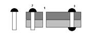 1. Для соединения детали с помощи заклепки в них просверливают сквозное отверстие, 2.Вставляют заклепку, 3. Свободный конец расплющивают в виде головки.