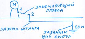 Для проверки заземления следует проверить надёжность крепления заземляющего привода в точке 1, на корпусе оборудования и в точке 2 в заземляющей штанге.