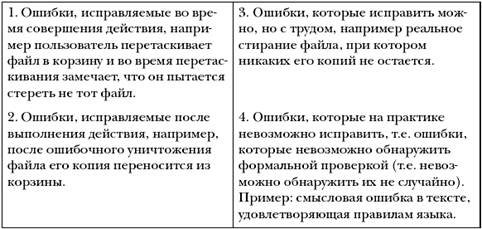 Помимо классификации человеческих ошибок, приведенной в начале главы, существует ещё одна классификация. В этой классификации ошибки расставлены по уровням их негативного эффекта: