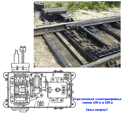Для перевода стрелок, включенных в электрическую централизацию, служат электроприводы, которые по конструкции могут быть врезными и неврезными. В настоящее время применяются неврезные электроприводы типов СП, СПГ, имеющие нераздельный ход остряков, один шибер и две контрольные линейки.