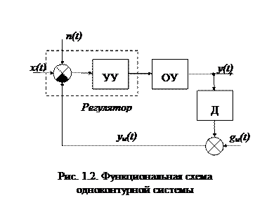 Объект управления работает в условиях изменения окружающей среды (температуры, давления, влажности и т. п.), колебаний напряжений источников питания. Влияние этих факторов в функциональной схеме учитывается введением случайного сигнала g(t), который называют возмущающим воздействием.