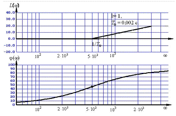 Таким образом, график L = L (w) идеального форсирующего звена совпадает с осью w на частотах, меньших частоты сопряжения w <