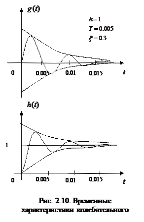Многие свойства динамики переходного процесса колебательного звена переносятся на системы более высокого (третьего, четвертого) порядка. Поэтому особый интерес представляют временные характеристики колебательного звена.