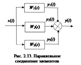 На рис. 2.13 представлена схема параллельного соединения трех элементов. Передаточные функции элементов заданы. Требуется найти передаточную функцию