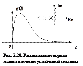 1. Все корни si < 0, i = 1, 2, …, n, вещественные и отрицательные, следовательно, все экспоненты импульсной переходной характеристики g = g (t) – убывающие функции времени и их сумма в пределе равна нулю.
