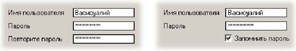 Рис. 17. Стандартный способ человеколюбивого использования паролей: слева во время регистрации, справа в дальнейшей работе.