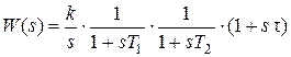 Передаточная функция (6.3) представляется набором типовых звеньев (интегрирующего, двух инерционных и форсирующего)