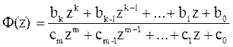 Передаточную функцию замкнутой системы всегда можно представить в виде отношения двух полиномов относительно переменной z.
