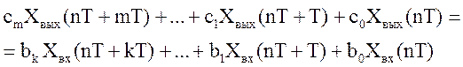 Динамические процессы в замкнутой импульсной системе описываются следующим разностным уравнением, полученным из формулы (3.19) путем перехода к оригиналам: