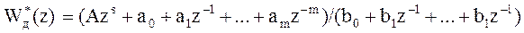 В качестве нормальной формы записи передаточной функции обычно принимают форму, при которой многочлены в числителе и знаменателе содержат только отрицательные степени z. Для приведения к нормальной форме разделим числитель и знаменатель передаточной функции (28) на zs: