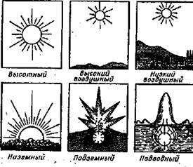 В зависимости от задач, решаемых путем применения ядерного оружия, вида и места нахождения объектов, ядерные взрывы могут осуществляться (рис. 6):