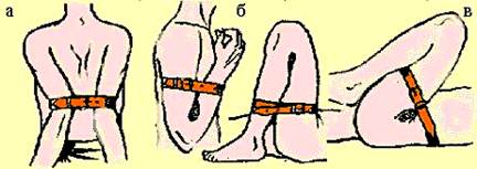Рис. 3. Остановка артериального кровотечения максимальным сгибанием конечностей при ранении сосудов: