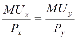 Потребитель будет предъявлять спрос на товар до тех пор, пока предельная полезность в расчете на одну денежную единицу, потраченную на данный товар, будет равна предельной полезности на одну денежную единицу, израсходованную на другой товар.