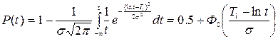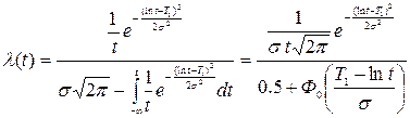 Существует целый класс распределений, которые можно отнести к нормальным, но при условии, что по нормальному закону распределена не сама величина t, а некоторая её функция. В логарифмически нормальном распределении по нормальному закону распределена не наблюдаемая величина t, а её логарифм