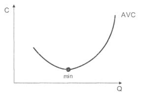Сначала доля переменных издержек при увеличении объема производства снижается. Когда доля переменных издержек достигает своего минимума – это значит, что фирк достигла эффективного размера производства, а после этой точки величина средних переменных издержек начинает возрастать.