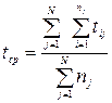 Из формулы (1.48) видно, что в данном случае наработка на отказ определяется по данным испытания одного образца изделия. Если на испытании находится N образцов в течение времени t, то наработка на отказ вычисляется по формуле