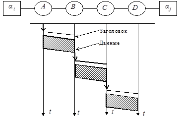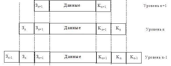 Данные, передаваемые в форме сообщения, снабжаются обрамлением, в котором содержится информация, необходимая для обработки сообщения на соответствующем уровне: указатели типа сообщения, адреса отправителя, получателя, канала, порта и т.д. Сообщение, сформированное на (n+1) -м уровне, при обработке на n -м уровне снабжается дополнительной информацией. Это же сообщение, поступая на следующий нижележащий уровень, в очередной раз снабжается дополнительной информацией. При передаче от низших уровней к высшим сообщение освобождается от соответствующего обрамления.