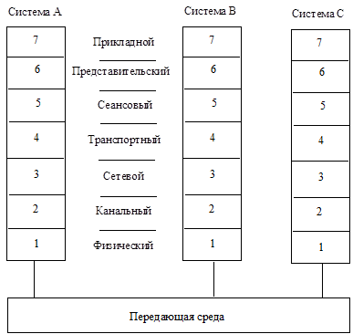 Обмен сообщениями в сети допускается только между процессами или логическими объектами, принадлежащими одноименным уровням в разных системах. Это означает, что прикладной процесс может взаимодействовать только с прикладным процессом, а процессы управления передачей на уровнях 1-6 – только с процессами одноименных уровней.