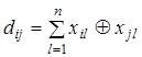 где xil – символ на l – ой позиции i – ой комбинации, xjl – символ на l – ой позиции j – ой комбинации,