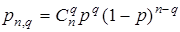 Здесь pn,q – вероятность того, что при передаче по дискретному каналу в кодовой комбинации двоичного кода с разрядностью n возникнет ошибка кратности q.