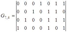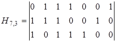 Если далее над этим кодом выполнить операцию укорочения, состоящую в удалении одного информационного разряда, то получится код (7,3) с d =4 и проверочной матрицей