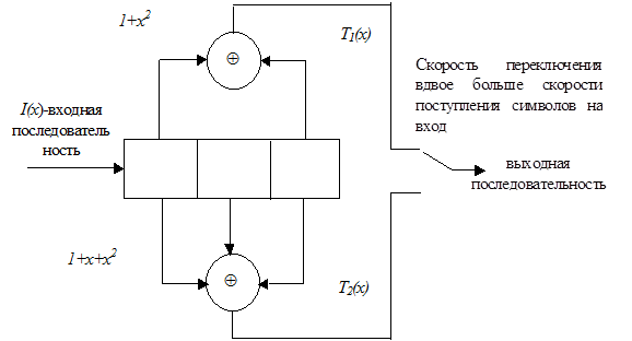 Таким образом, сверточный код, формируемый этим кодером, имеет следующие параметры: