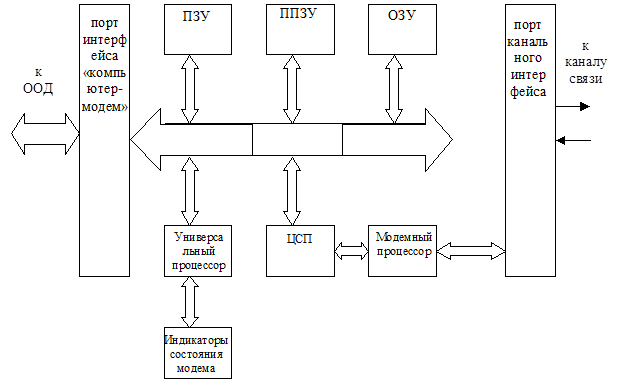 Рассмотренная схема не является структурной схемой какого-либо конкретного модема, а представляет собой обобщенную функциональную организацию современного модема. В каждой конкретной модели описанные функции могут быть реализованы различными способами.