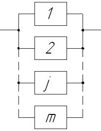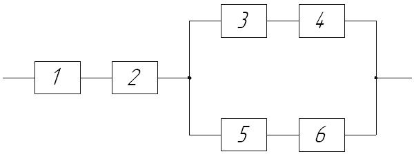 Если отказ элемента независимо от его назначения вызывает отказ системы, то элемент соединяют последовательно. Если отказ системы возникает при отказе всех или части однотипных элементов, то такие элементы соединяют параллельно. Последовательное соединение элементов называют также основным, а параллельное – резервным. Кроме этого соединение элементов может быть смешанным, например как на рис.10.