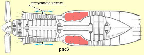 Итак для того чтобы расход воздуха на выходе из двигателя соответствовал расходу на входе, на средних ступенях компрессора, по окружности, устанавливают перепускные клапаны. Обычно такую схему применяют на турбовинтовых двигателях. (см рис. 3)