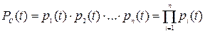 Поскольку при основном соединении элементов (см. рис.9) работоспособное состояние системы имеет место при совпадении работоспособных состояний всех элементов, то вероятность этого состояния системы определяется произведением вероятностей работоспособных состояний всех элементов.