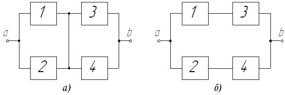 При составлении минимальных путей и сечений любая система преобразуется в структуру с параллельно-последовательным или последовательно-параллельным соединением элементов.