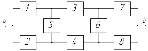 Необходимо определить вероятность наличия цепи между точками a и b схемы.