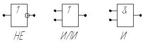 Логические функции образуются с помощью трех основных операций: логического отрицания (