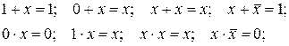 Для преобразования алгебраических выражений используются следующие тождества и законы математической логики:
