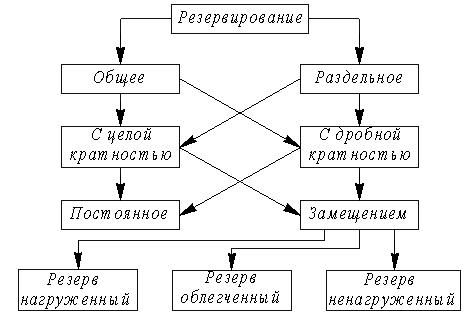 Различают резервирование с целой и дробной кратностью. Схемные обозначения обоих видов резервирования при постоянном включении резерва одинаковы. Для их различия на схеме указывается кратность резервирования m.