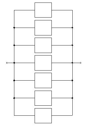 Схемные обозначения различных способов резервирования приведены на рис.22-26. Общим резервированием называется метод повышения надежности, при котором резервируется изделие в целом (рис.22). Раздельным резервированием называется метод повышения надежности, при котором резервируются отдельные части изделия (рис. 23).
