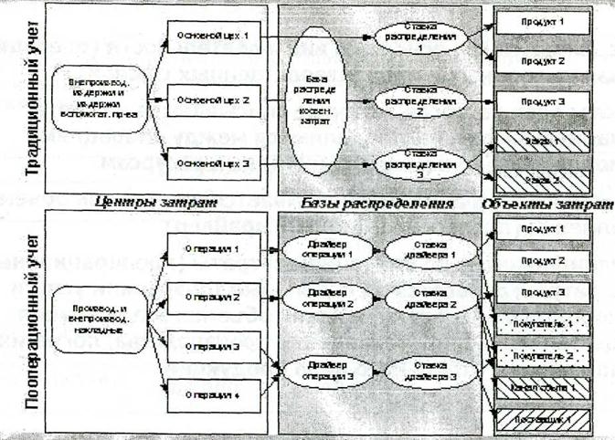 6. Выводы по проведенному исследованию отличий традиционной системы учета затрат и калькулирования и метода АВС можно обобщить, схематично проиллюстрировав следующим образом (рис. 9 и табл.2):