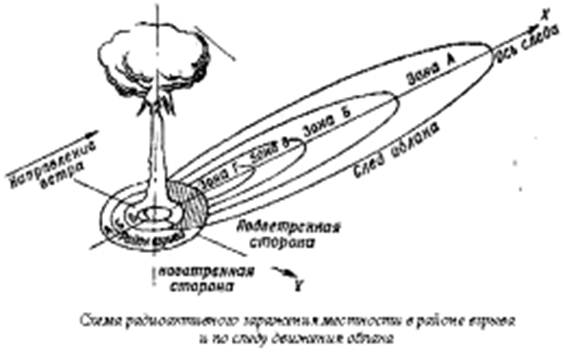 Радиоактивное заражение местности, приземного слоя атмосферы, воздушного пространства, воды и других объектов возникает в результате выпадения радиоактивных веществ из облака ядерного взрыва.