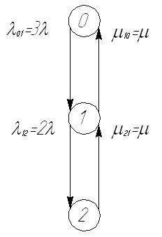 Рис.33. Граф переходов системы при двухкратном резервировании