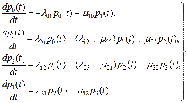 Независимо от вида графа ясно, что для нахождения количественных характеристик надежности перечисленных в нашем примере случаев достаточно было бы получить формулы для вычисления вероятностей состояний устройства в зависимости от интенсивностей переходов