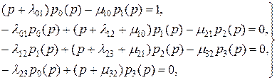 Решая эту систему уравнений с помощью преобразования Лапласа, приходим к следующей системе линейных алгебраических уравнений: