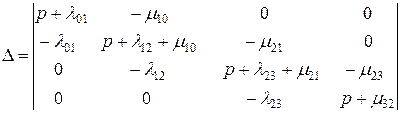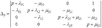 видно, что этот определитель представляет собой произведение интенсивностей переходов из всех возможных исправных состояний в неисправное состояние 3.