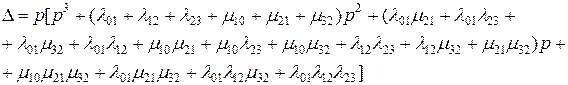 есть сумма произведений интенсивностей переходов, взятых по три, за исключением тех, в которых встречаются те же произведения